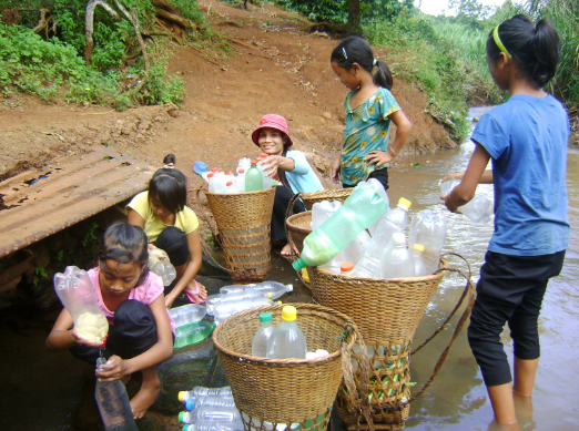 Người dân ra suối lấy nước về sử dụng qua ngày