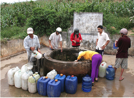 Tình trạng thiếu nước xảy ra người dân phải sử dụng chung một giếng nước