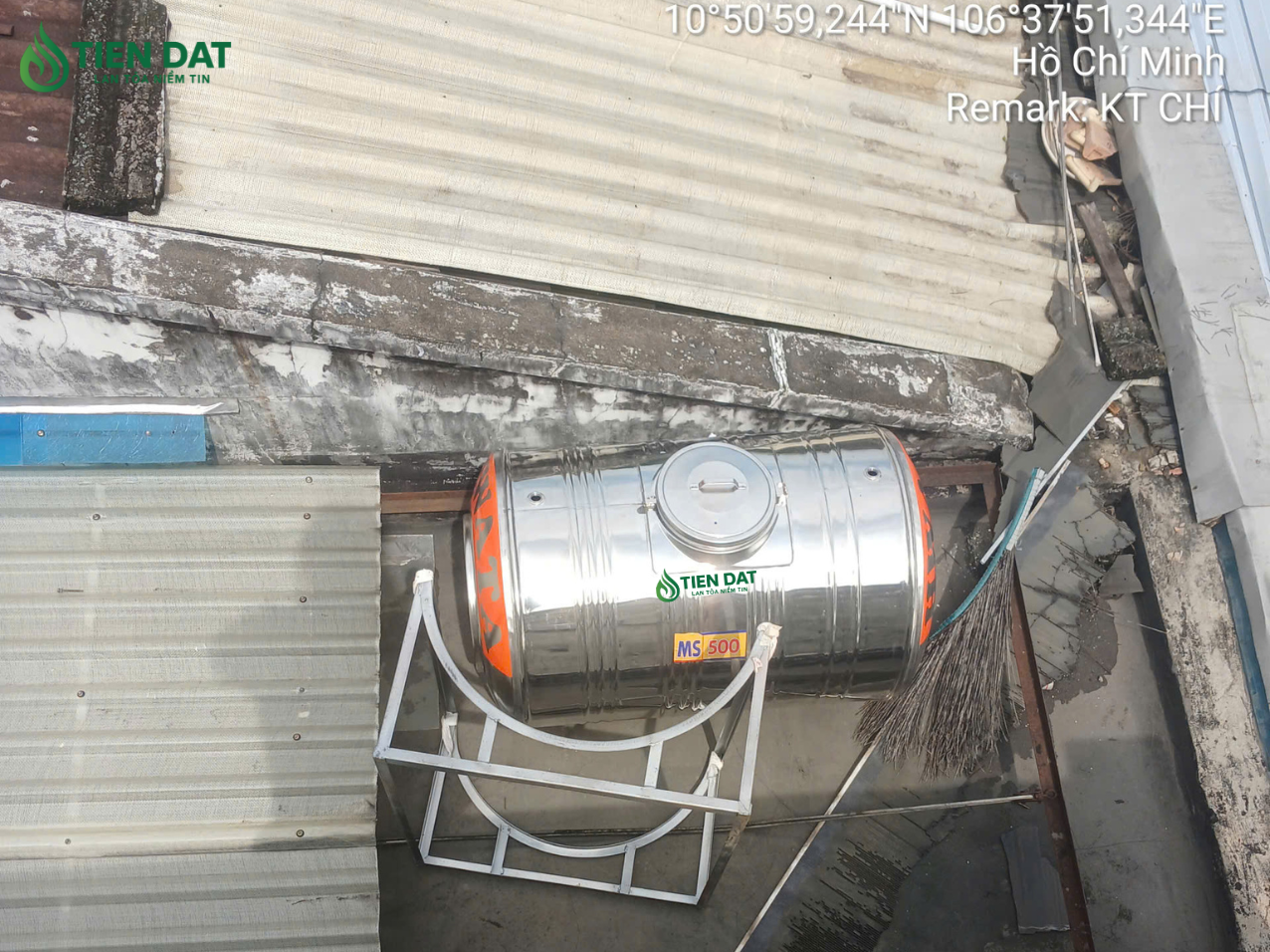 Dưới đây là hình ảnh công trình bàn giao hoàn thành – kỹ thuật Chí thuộc đội ngũ Nhà phân phối Tiến Đạt tiến hành giao và hỗ trợ kéo bồn nước inox Hwata 500L ngang cho chị Loan tại Quận 12.